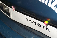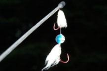 When we find lures while fishing, we stick them in the front grille of the van. And hanging from the antenna is the drift rig that we used to catch the first king salmon of the year.