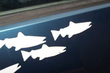 Every time we catch a salmon, we put a homemade salmon sticker on the van. Each family member has a part of the van where their stickers go, so you can see which of us has caught the most fish.